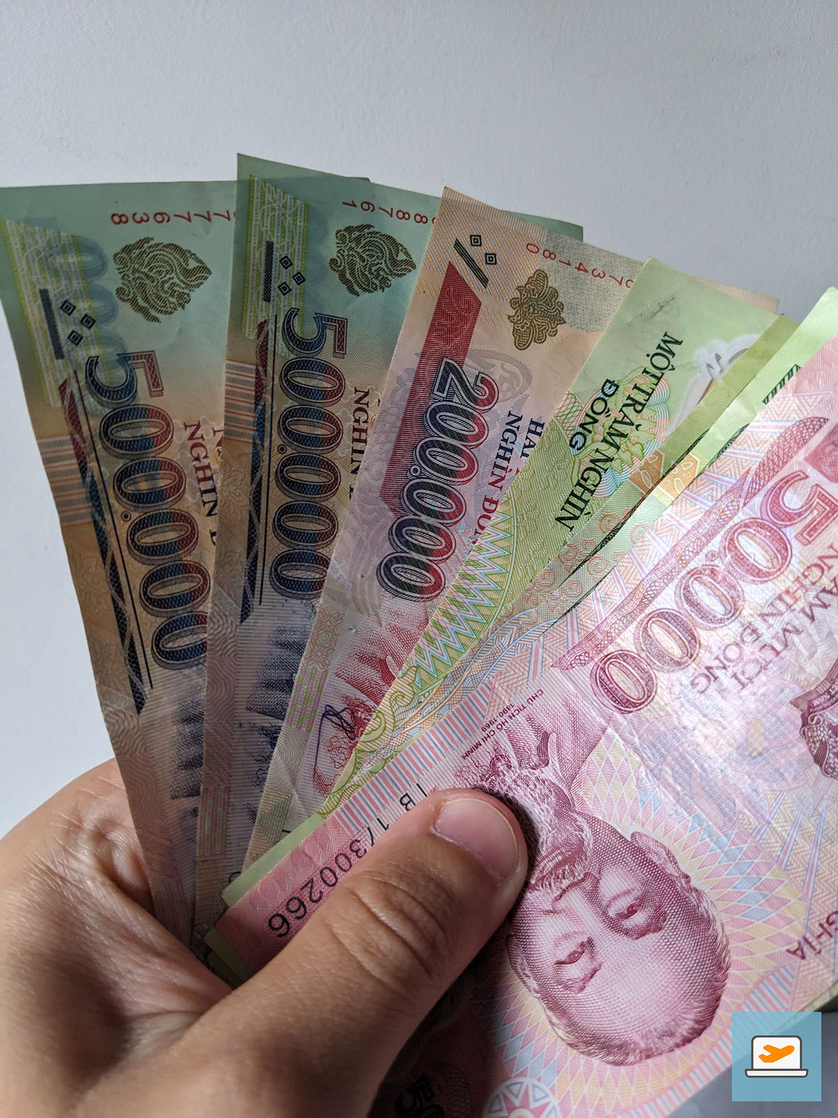 Im Hostel angekommen war es erstmal Zeit für etwas Orientierung: Konkret bedeutete das planlos herumlaufen und mich um eine SIM-Karte und um Bargeld kümmern. An dieser Stelle möchte ich insbesondere letzteres hervorheben, denn (diesen Witz gibt es im Internet sicher schon millionenfach) durch meine Einreise in den Vietnam bin ich zum Multimillionär geworden. Und zwar nicht aufgrund der unterschiedlichen Lohn- und Lebenshaltungskostenverhältnisse, sondern einfach aufgrund des Wechselkurses: Meine am Geldautomaten abgehobenen $135/80€ entsprachen nämlich zwei Millionen vietnamesischen Đồng. Und so hielt ich auf einmal zwei Millionen in der Hand.