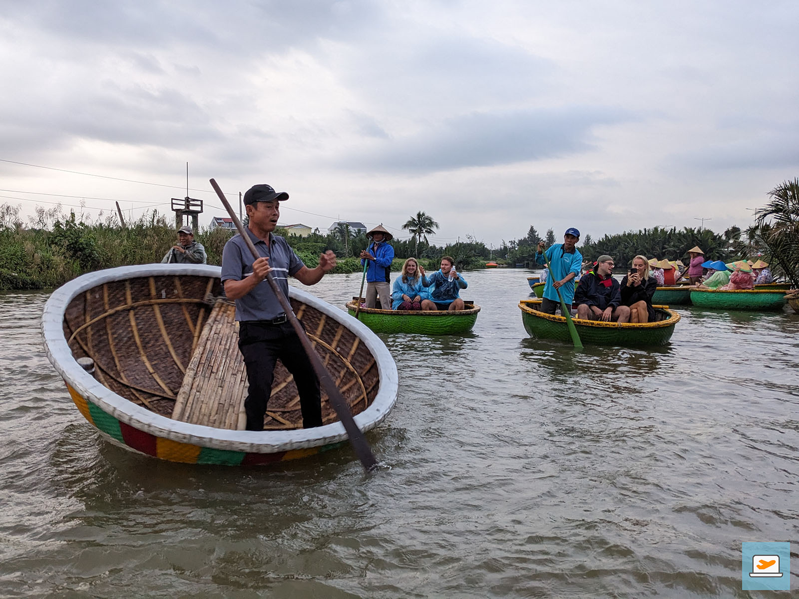 Am Nachmittag ging es dann noch in einen Kochkurs, in dem wir die Möglichkeit bekamen, das so leckere vietnamesische Essen selber zu kochen. Bevor wir dazu übergehen konnten, führte uns der Weg aber zunächst an einige Stände auf einem lokalen Markt, um noch die ein oder anderen Zutat zu erwerben, außerdem bekamen wir bei einer kurzen Bootstour in Korbbooten die ein oder andere Tanzeinlage der Fischer zu Gesicht.