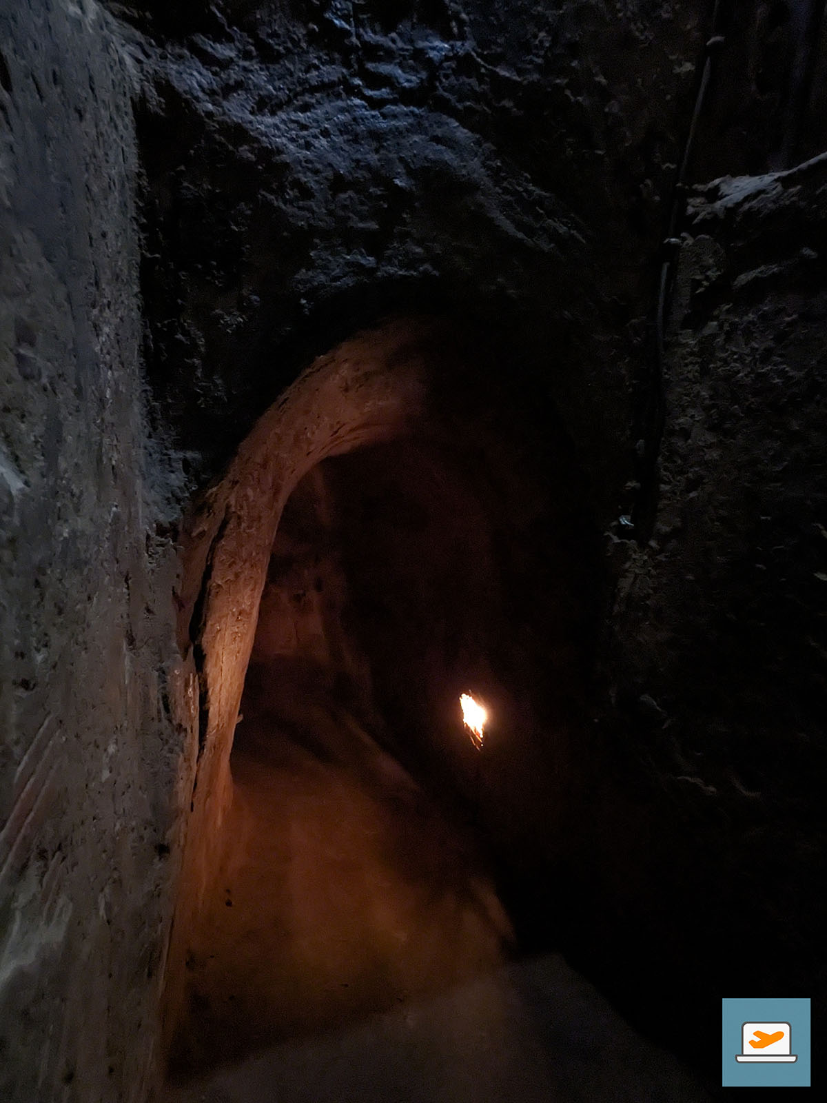 In diese Tunnel konnte man auch – sofern man wirklich keine Platzangst hatte – rein und auch einige Meter lang durch „gehen“, wobei gehen hier sehr relativ ist. Der für Touristen erschaffene Anfangsweg rein ermöglichte noch teilweise ein Stehen, bis der Tunnel selbst nach und nach enger wurde – so eng, dass man in der Hocke durchkriechen musste, aber rechts, links, oben und unten die Wände spürte und quasi keinen Bewegungsspielraum hatte. Selbst das Umdrehen auf der Stelle war schwierig, sodass die „Touristenversion“ der Tunnel alle paar Meter mit Notausstiegsluken ausgestattet war (von denen ich nicht Gebrauch machte, da ich schon viel früher den Weg zurück einschlug und mich für die Strecke in freier Natur entschied).