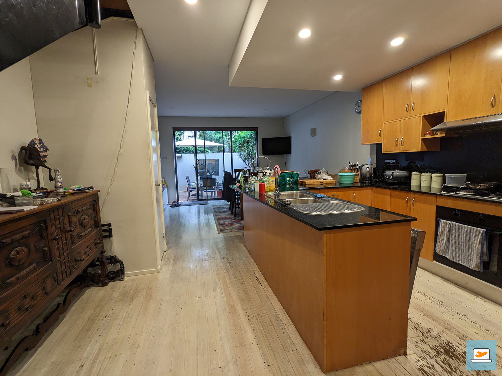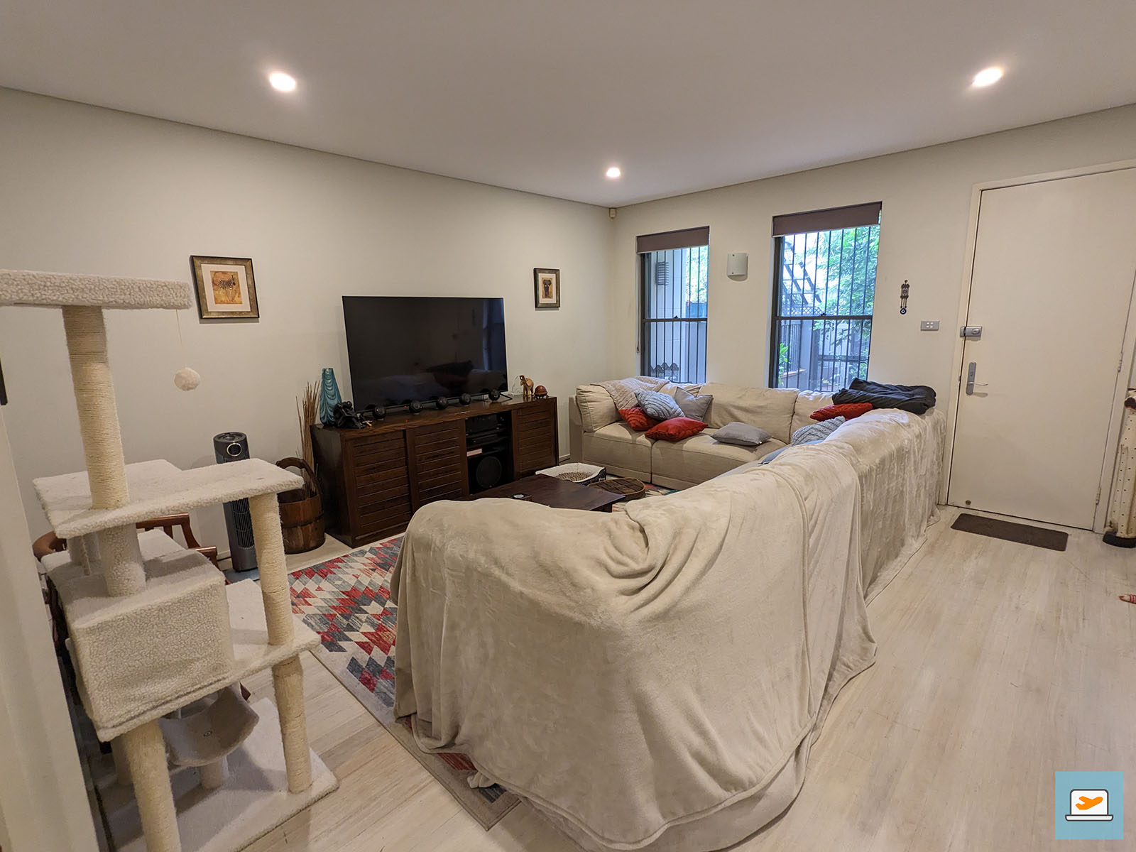 Zu den drei Katzen gehörte natürlich auch noch ein Zuhause, in dem die drei mit ihren beiden Herrchen, James und Graham, lebten und auf welches ich ebenfalls die kommenden drei Wochen aufpassen durfte. Es war in Alexandria gelegen und rund 20 Minuten Fußweg oder alternativ paar Minuten mit dem Bus von den Bahn-Stationen Redfern und Erskineville entfernt und bestand aus insgesamt drei Stockwerken mit einer kleinen Terrasse mit BBQ und Sitzmöglichkeit. Das Haus befand sich in einem Komplex mehrerer Häuser, sodass man vorher noch durch ein Tor auf das Gelände selbst musste. Dadurch war es auch nicht freistehend, stattdessen sehr länglich gebaut, was den oben genannten Sporteinheiten für Billy und mich aber zu Gute kam.